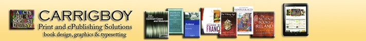 Established in 1994, Carrigboy is an independent typography, graphics and book design business. We design and set books for legal, academic and educational publishers, as well as for self-publishing authors in both fiction and non-fiction. Carrigboy specialises in: